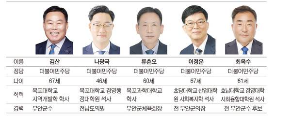 누가 뛰나·무안군수〉‘공항이전·통합청사’ 이슈… 민주당 5파전 '집안 싸움'