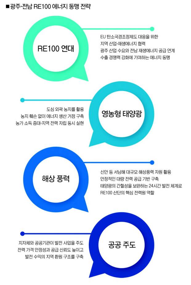 전남은 풍부한 재생에너지의 확실한 소비처를 확보하고 광주는 RE100 달성에 필요한 대규모 전력을 안정적으로 공급받는 ‘윈-윈’ 구조가 형성되기 때문이다.
