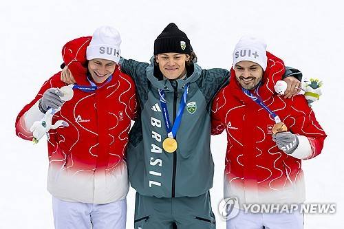 epa12738903 (L-R) Silver medalist Marcko Odermatt of Switzerland, gold medalist Lucas Pinheiro Braathen of Brazil, and bronze medalist Loic Meillard of Switzerland during the medal ceremony for the Men's Giant Slalom of the Alpine Skiing competitions at the Milano Cortina 2026 Winter Olympic Games, Stelvio ski centre in Bormio, Italy, 14 February 2026. EPA/MICHAEL BUHOLZER EDITORIAL USE ONLY