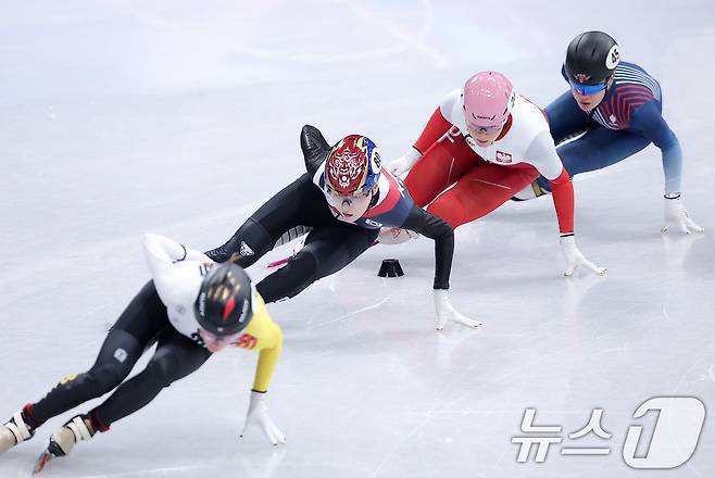 (밀라노=뉴스1) 김성진 기자 = 쇼트트랙 노도희가 14일(현지시간) 이탈리아 밀라노 아이스스케이팅 아레나에서 열린 2026 밀라노·코르티나담페초 동계올림픽 쇼트트랙 여자 1000m 예선에서 질주하고 있다. 2026.2.15/뉴스1