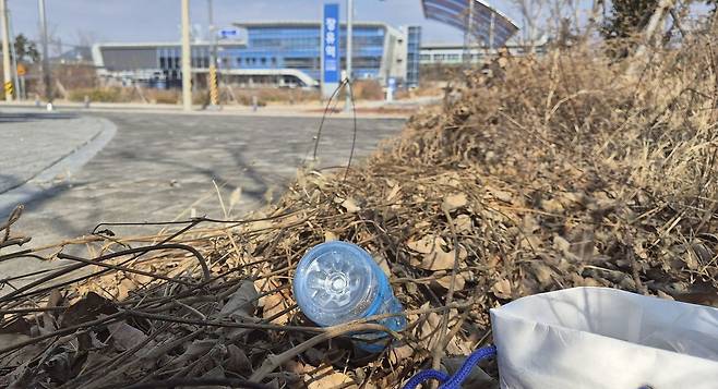 경남 김해에는 지은 지 5년이 되도록 전철이 오지 않는 역(驛)이 있다. 김해 내덕동에 있는 장유역이다. 이 때문인지 지난 11일 오후에 찾은 장유역은 대낮인데도 인적이 뜸했다. 역 진입로엔 ‘관계자 외 출입금지’라고 쓴 입간판만 덩그러니 서 있었다. 역 바로 앞 쉼터도 잡풀만 무성했다. 그 사이로 빈 플라스틱병, 라면 용기, 답배갑 등 쓰레기가 버려져 있었다. 역 주변도 허허벌판이었다. 흔히 통용되는 ‘역세권’이란 말이 무색했다.