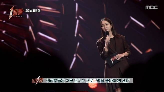 15일 저녁 MBC '1등들'에는 역대 음악 오디션 우승자들이 한자리에 모여 통합 챔피언을 가리는 경연이 펼쳐졌다. MC 이민정은 "1등들만 모아 1등 중의 1등을 뽑는 오디션 끝장판"이라며 "3등 안 되고, 2등 안 된다. 오직 1등들만 설 수 있는 무대"라고 강조했다.