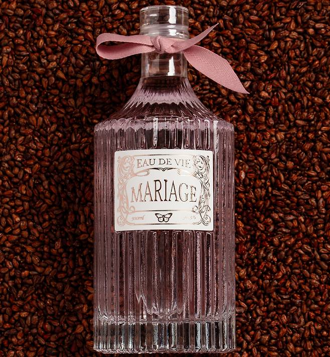 ‘마리아주 오드 비’는 일반적인 오드 비와 달리 MBA 적포도를 레드와인으로 빚은 뒤 두 번 증류했다. 여기에 블랙커런트 천연색소를 넣어 은은하지만 영롱한 분홍빛을 띠게 만들었다.