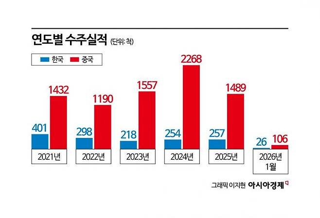 중국이 전체 수주 물량에서는 한국을 추월했지만, 한국 조선업계가 기술력을 앞세워 세계 LNG선 시장을 주도해 온 흐름과는 다소 다른 양상이다.