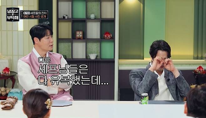이후 모든 셰프들의 사진이 공개되자 김성주가 "최 셰프 빼고는 다 유복했네요"라고 하자 최현석은 "그게 전쟁 직후라"라고 자포자기하며 너스레를 떨었다.