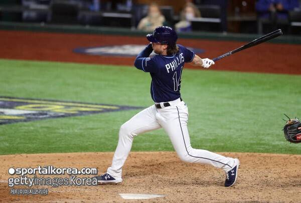 그런데 다저스를 상대한 월드 시리즈에서 '대반전'이 일어났다. 4차전에서 필립스는 최지만의 대주자로 경기 후반부에 투입됐다. 이후 6-7로 밀리던 9회 말 2사 1루 상황에서 타석에 불방망이를 휘두르던 랜디 아로사레나가 들어왔고, 다저스 벤치는 승부를 피했다.