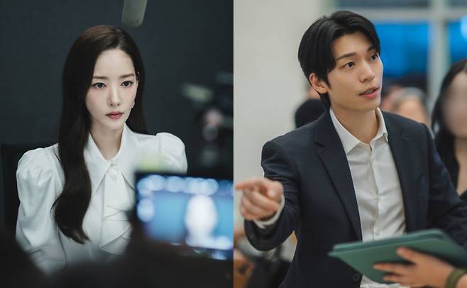 카메라 밖에서는 또 다른 분위기가 포착됐다. 박민영은 밝은 미소로 현장을 환하게 만들고, 위하준은 진지한 표정으로 동선을 점검하며 완성도를 높인다. 김정현 역시 작품에 대해 논의를 이어가며 열정을 드러냈다.