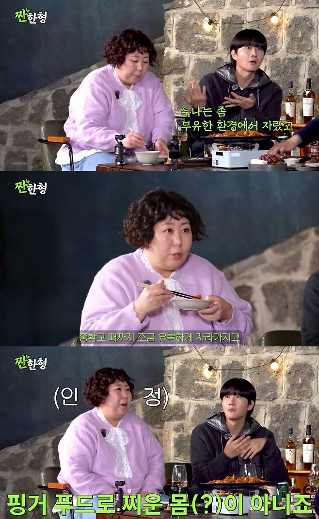 신기루는 "어릴 때 중학교 때까지 좀 유복하게 자랐다. 주전부리로 찌운 몸이 아니다"라고 인정했고, 이용진은 "핑거 푸드로 찌운 몸이 아니다. 저랑 20년 넘었는데 잘 안 맞았던 건 난 헝그리고 누나는 세입자에게 월세 받았다는 거다. 집이 잘 사니까"라고 폭로했다.