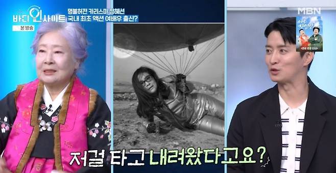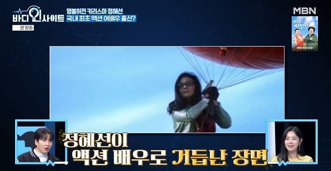 국내 1호 액션 여배우에 빛나는 정혜선은 "KBS에 '실화극장'이라는 작품이 있었는데 007 시리즈의 여주인공 역할을 하면서 영화계 러브콜을 많이 받았다"라고 입을 뗐다. 이어 "그땐 대역 없이 액션을 하던 때라 애드벌룬을 타고 내려오는 장면도 직접 찍었다. 안전장치도 전혀 없었지만 '떨어지면 죽는다'는 생각은 아예 하지 않았다. 오직 연기만 생각했다"며 프로정신을 전했다.