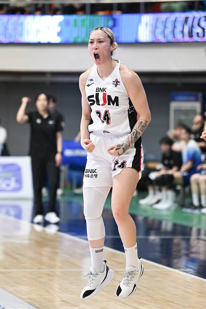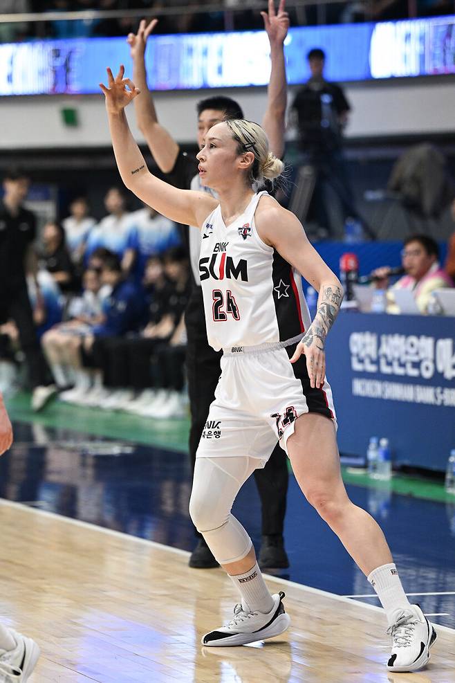 부산 BNK썸 김소니아는 16일 인천도원체육관에서 열린 BNK금융 2025~2026 여자프로농구 인천 신한은행과의 경기에서 36분 동안 코트를 누비며 17점 9리바운드를 기록했다. 팀은 58-55로 승리했다.
