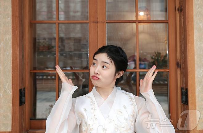 (서울=뉴스1) 권현진 기자 = 배우 최지수가 서울 종로구 뉴스1 인근에서 열린 인터뷰에 앞서 한복을 곱게 차려입고 새해 인사를 전하고 있다.