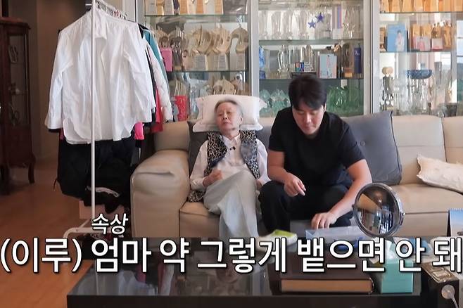 이루는 약을 삼키지 않고 뱉어버렸다는 모친에 "약 그렇게 뱉으면 안 된다. 먹어야 한다"고 그를 달랬다.