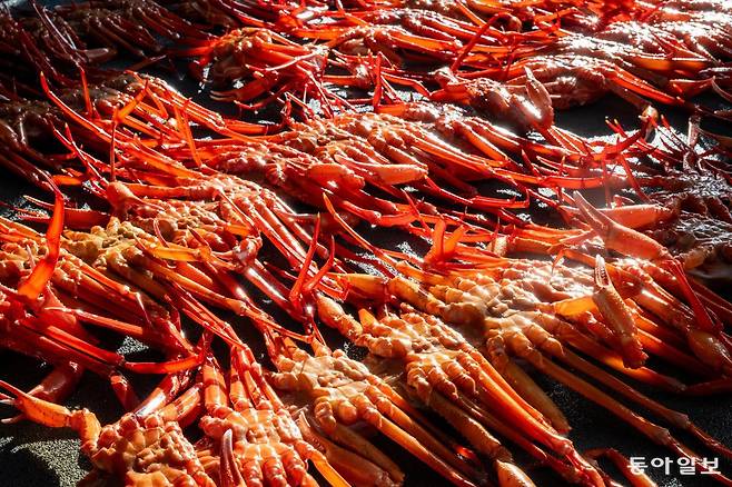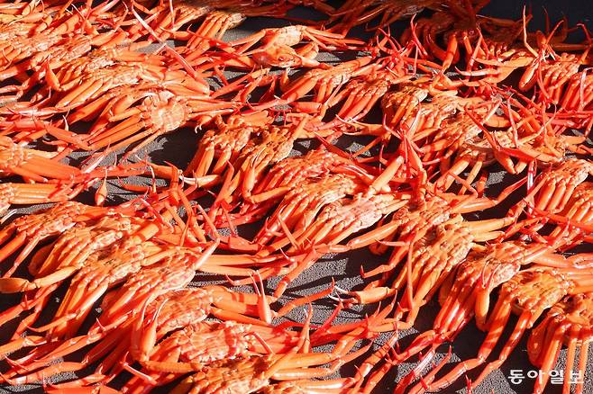 울진대게는 1795년(정조 19년) 사도세자를 추도하는 제향의 식탁에 진상될 정도로 귀한 음식이었다. 그런데 이 대게가 영덕의 강구항에서 집하돼 팔려나가 한동안 ‘영덕대게’로 전국에 알려졌다. 울진의 입장에선 억울했다. 울진 어부가 울진 왕돌초에서 잡은 대게가 영덕대게로 불리다니. 그래서 1999년 울진군은 ‘울진대게 축제’를 시작했다. 이후 25년간 매년 2월말~3월초에 후포항에서 꾸준히 열렸다.