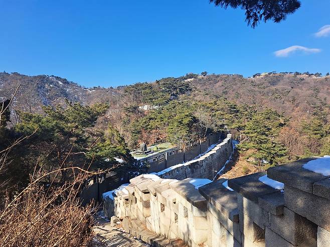 혜화문에서 시작한 오늘의 걸음을 숙정문 앞 백악산 자락에서 멈춘다. 성곽은 여러 차례 허물어졌고, 잘리고, 다시 쌓였다. 그 과정마다 도성에 살던 사람들은 무엇인가를 지켜냈고, 또 어떤 선택을 하며 살아왔다. 한양도성을 따라 걷는다는 건, 그 선택이 남긴 자리를 세심하게 살펴보고 느끼는 일이다. 시간을 데리고 온 성곽에 낀 이끼가 겨울 추위에 푸르게 말라붙었다.