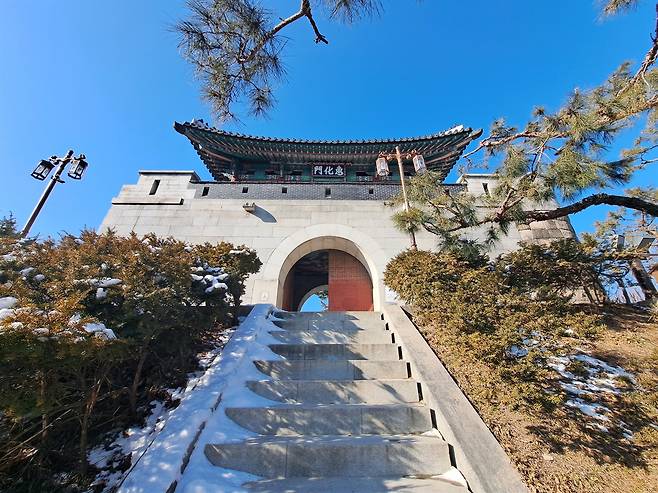 | ▲ 혜화문 2월 초순 찾은 옛 문의 터에서 옆으로 높이를 맞춰 1994년 복원된 혜화문. 동쪽의 작은 문이라 해서 '동소문'으로도 불렀다. |