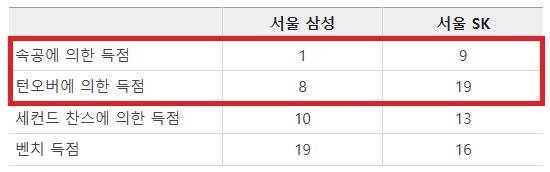 삼성의 3점슛보다 SK의 속공이 더 강했다.