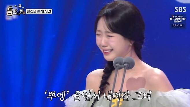 그런 가운데 유연석은 지예은의 'SBS 연예대상' 수상소감을 떠올리며 "시상식 때 수상 소감하면서 뭐가 그렇게 북받쳐서 '뿌엥'한 거냐"고 물었다. 지예은은 "전 '런닝맨' 선배님들 보면 눈물이 난다"라고 밝혔다.