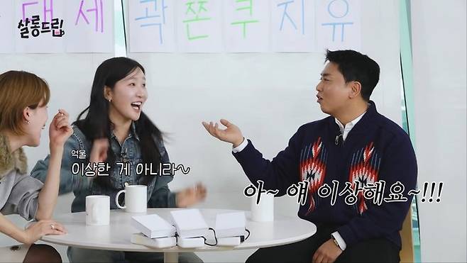 이를 들은 곽범은 눈을 질끈 감으며 질색한 표정을 지었고, 욕설을 섞어 "아 얘 이상해요"라고 외쳐 현장을 웃음바다로 만들었다.