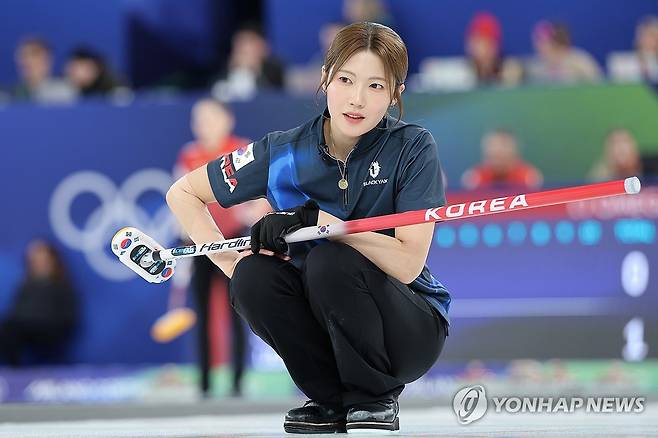 (코르티나담페초=연합뉴스) 서대연 기자 = 17일(현지시간) 이탈리아 코르티나담페초 컬링 올림픽 스타디움에서 열린 2026 밀라노ㆍ코르티나담페초 동계올림픽 컬링 여자 라운드로빈 한국과 스위스의 경기에서 설예지가 투구를 마친 뒤 스톤을 바라보고 있다. 2026.2.17