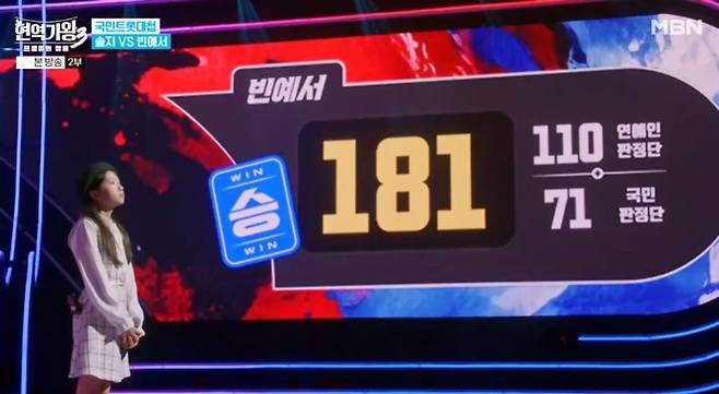 이에 힘입어 빈예서는 솔지를 꺾고 181점으로 승리를 거뒀다.