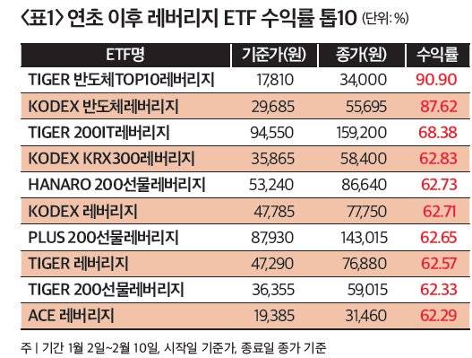 이제 2월인데 수익률 90.90%, 반도체 2배 레버리지 투자 통했다