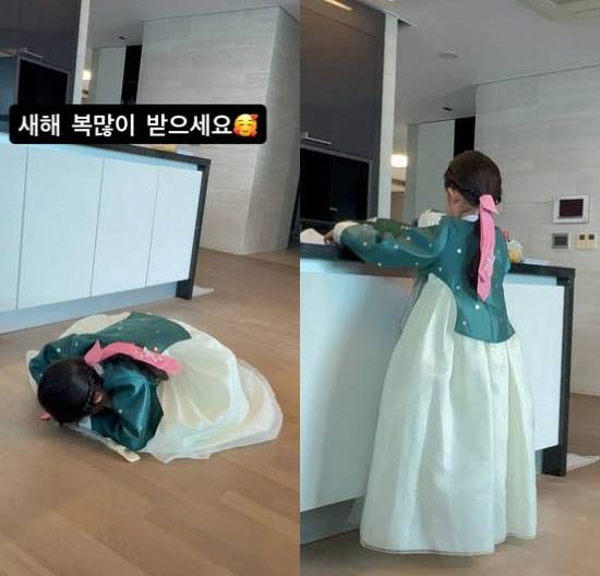 최지우는 "할부지 할무니한테서 세뱃돈도 받구"라는 글을 덧붙이며, 용돈을 받은 뒤 신이 난 듯 종종걸음으로 걸어가는 뒷모습도 함께 전했다. 한껏 부푼 치마를 잡고 발끝을 살짝 들고 걷는 모습에서 아이 특유의 발랄함이 고스란히 전해진다.