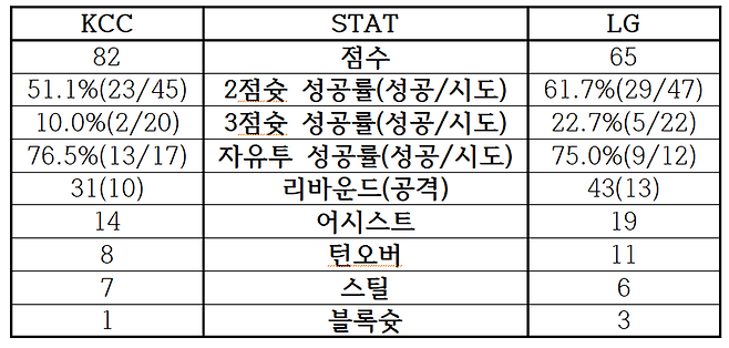 [KCC-LG, 4라운드 맞대결 주요 기록]