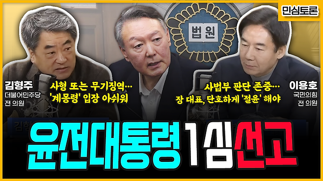 [민심 토론] 윤 전 대통령 1심 선고 (김형주) "사형 또는 무기징역...'계몽령' 입장 아쉬워" vs (이용호) "사법부 판단 존중...장 대표, 단호하게 '절윤'"