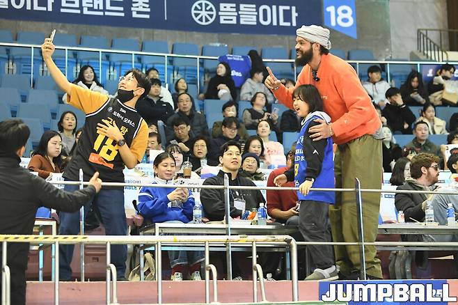 지인들과 함께 잠실실내체육관을 찾은 노아는 경기전부터 팬들의 사진 촬영 요청에 하나하나 응하며 NBA에서 몸에 밴 팬서비스 마인드를 보여줬다.