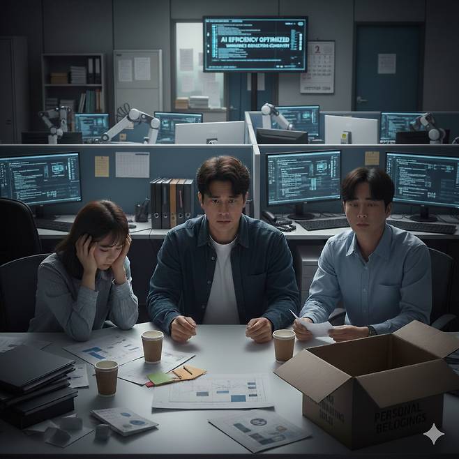 "친구 중 게임사에 그래픽 디자이너로 취업한 친구 있다고 했잖아요. 그 회사도 작년에 희망퇴직 받았대요. AI 도입에 따른 구조조정이라고. 친구는 신입이라 대상은 아니지만 친한 선배들이 일괄 퇴직해서 충격받았대요."
