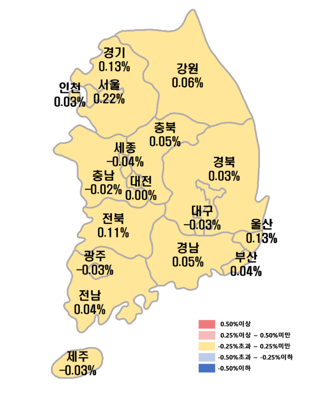 전세가격 역시 0.04% 상승한 전국 평균과 달리, 대구는 보합권을 벗어나지 못하고 약세 흐름을 보였다.