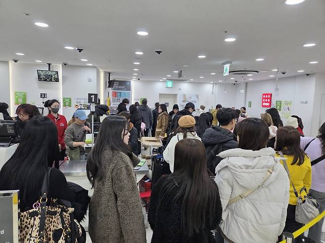 명동역 인근 다이소 매장도 상황은 비슷했다. 입구에서부터 단체 관광객과 개별 관광객으로 인산인해였다. 결제 키오스크 앞에도 10m 이상 대기 줄이 길게 늘어섰다. 계산까지 20~30분 이상 기다려야 할 정도였다.