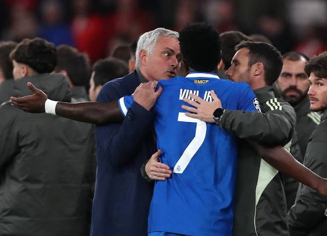 "비니시우스 세리머니가 우리 선수 자극" 무리뉴, 인종차별 옹호 발언 논란…레알 마드리드 1-0 승리 뒤덮었다→감독 퇴장까지 초유의 난장판