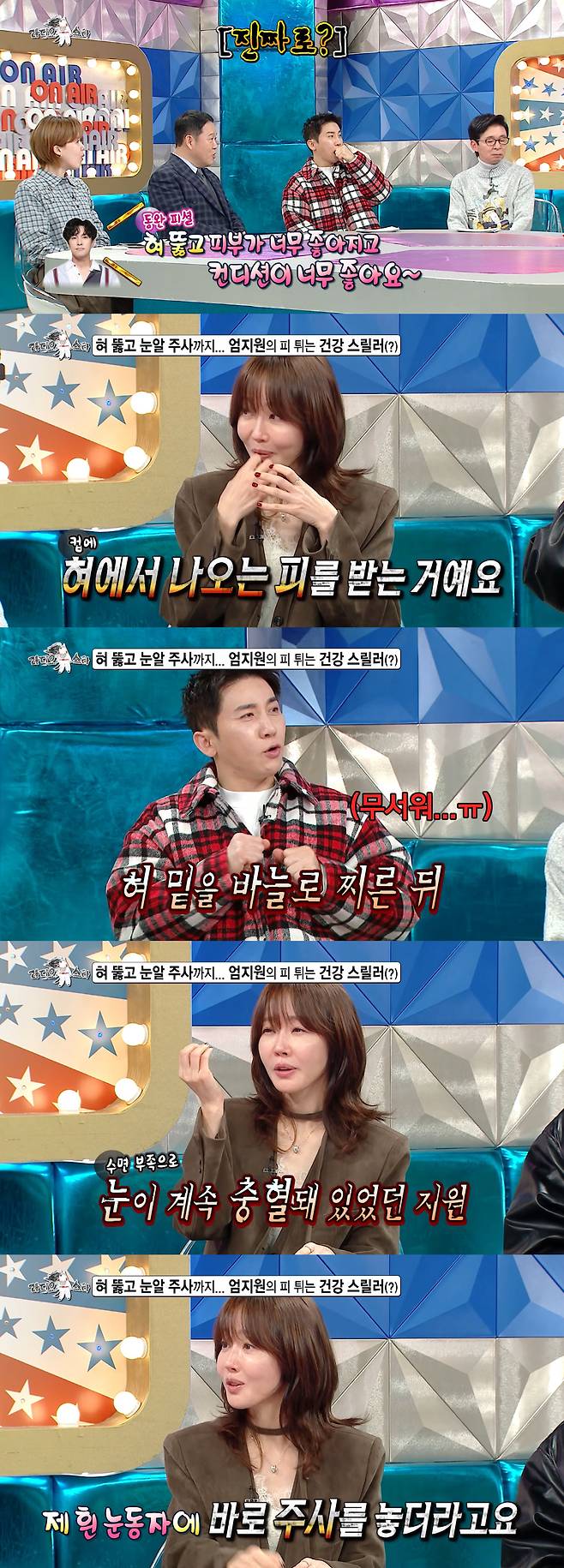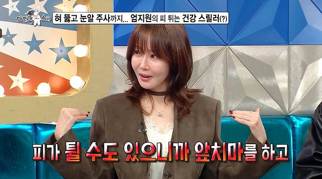 18일 MBC '라디오 스타' 측은 '혀 뚫고 눈알 주사까지… 엄지원의 피 튀는 건강 스릴러(?)'라는 예고 영상을 공개했다.