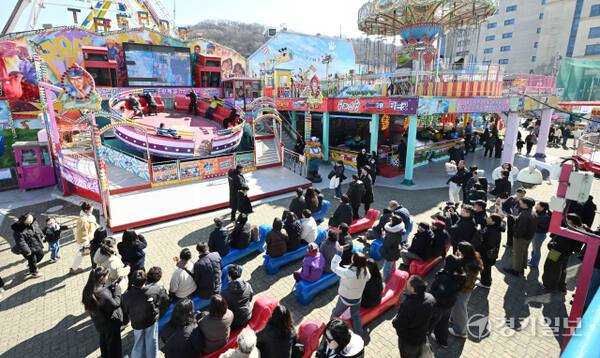 설 연휴 마지막 날인 18일 인천 중구 월미도 놀이시설을 찾은 나들이객들로 붐비고 있다.