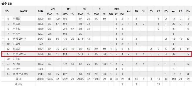 다만, DB는 알바노가 3어시스트 이하에 그친 5경기 모두 60점대에 그쳤다.