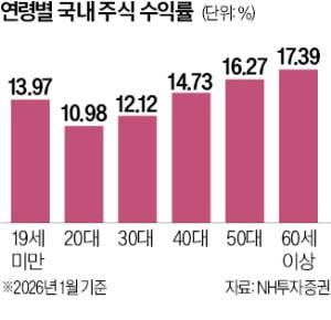 투자자 수익률 격차도 커졌다. NH투자증권에 따르면 올해 국내 주식 수익률 1위는 금융자산 5억원 이상 보유자였다. 이들은 지난달 18% 넘는 수익률을 거뒀다. 가장 낮은 수익률을 기록한 이들의 금융자산은 500만원 이상~2000만원 미만(14.43%)이었다. 주식 수익률과 자산 규모는 비례하는 추세다. 연령별로도 수익률이 가장 높은 연령층은 60세 이상(17.39%), 가장 낮은 연령층은 20대(10.98%)였다.