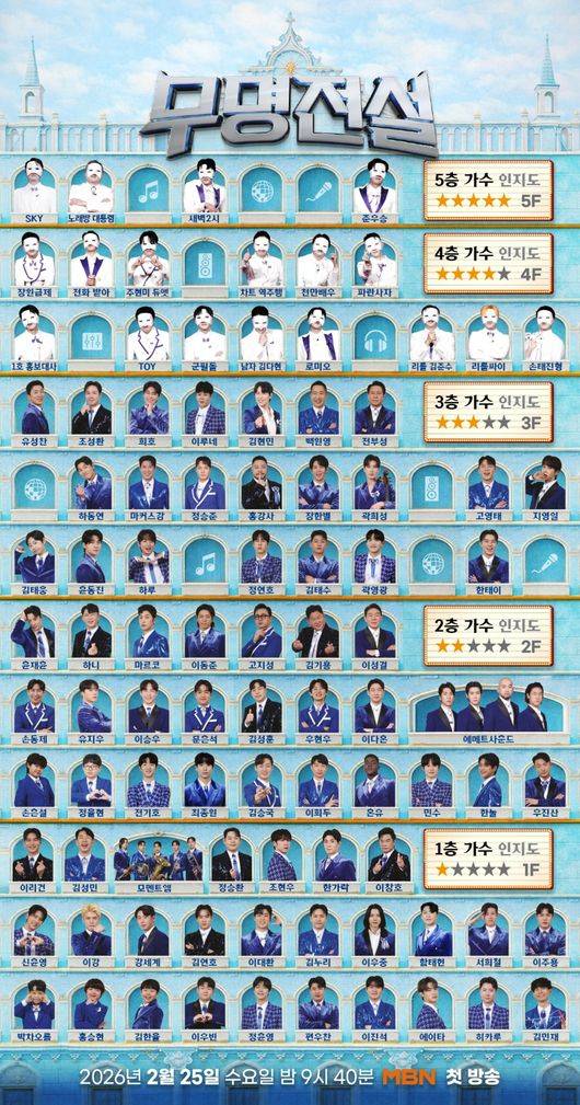 '무명전설'은 99인의 도전자들이 단 하나의 왕좌를 두고 경쟁하는 트롯 서바이벌이다. 오는 25일 수요일 밤 9시 40분 첫 방송된다.