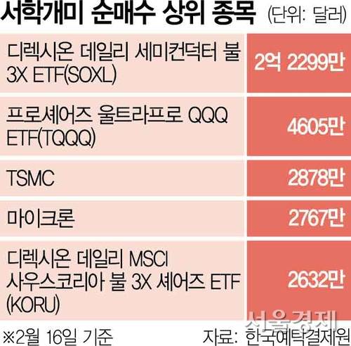 美 반도체 3배 ETF 베팅한 서학개미…하루에만 3200억 ‘사자’