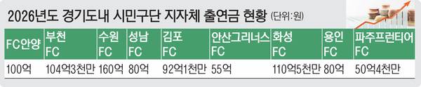 이는 전국에서 가장 많은 규모다. 용인과 파주는 올해 프로 무대에 첫발을 내딛는다. 또 광주시, 의정부시 등도 창단 움직임이 있다.