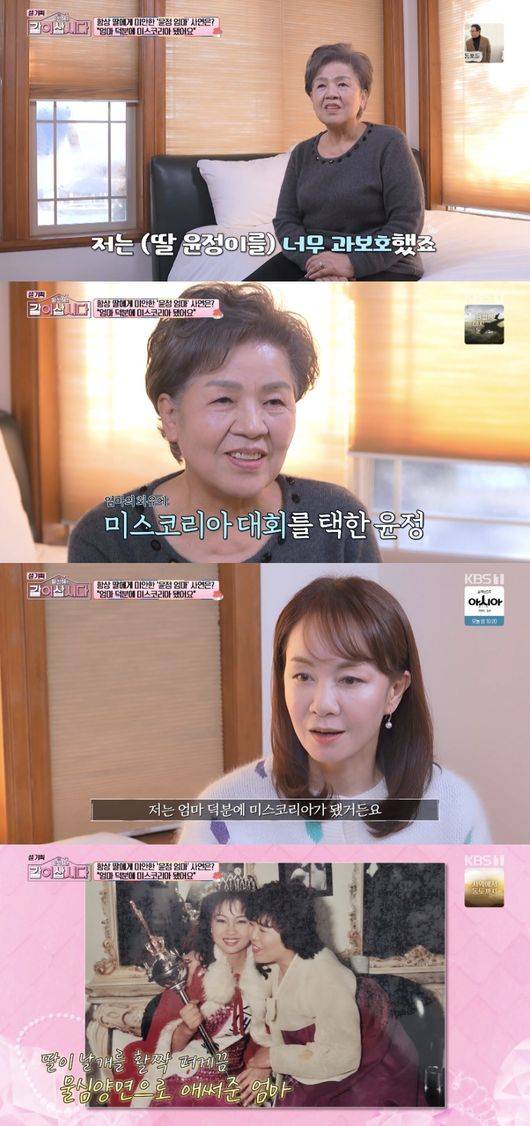 장윤정은 “미스코리아 언니들하고 나이트클럽 가는데 엄마 몰래 쫓아와서 지키고 서있었잖아”라고 회상했고, 어머니는 “그런게 미안하다. 시간이 지나버려서 돌이킬 수도 없고”라고 했다.