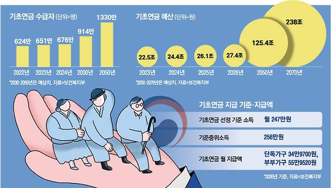 한 정부 고위 관계자는 “기초연금은 현행 제도대로 두면 재정이 눈덩이처럼 불어나기 때문에 개혁이 필요한 시점”이라면서 “올해 지방선거 이후 정치권이 결단할 수 있도록 현재 국회 연금개혁특별위원회와 함께 다양한 개선 방안을 검토하고 있다”고 설명했다.