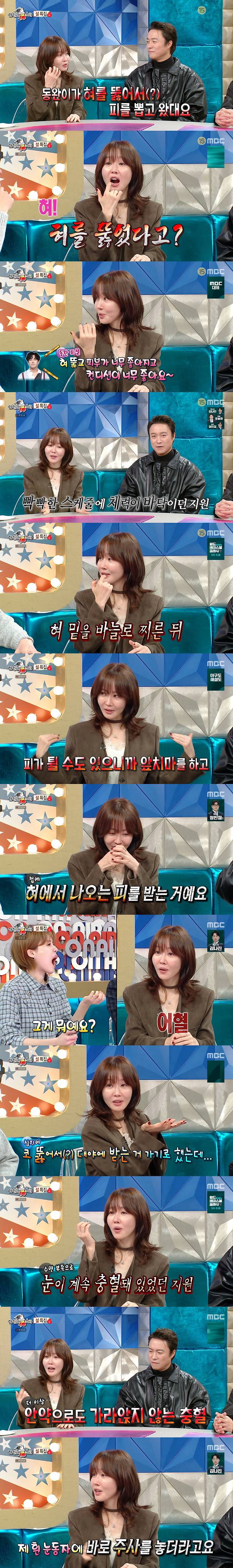 배우 엄지원이 건강을 위해 혀를 뚫고 눈 흰자위에 주사까지 맞았다는 경험담으로 스튜디오를 충격에 빠트렸다.