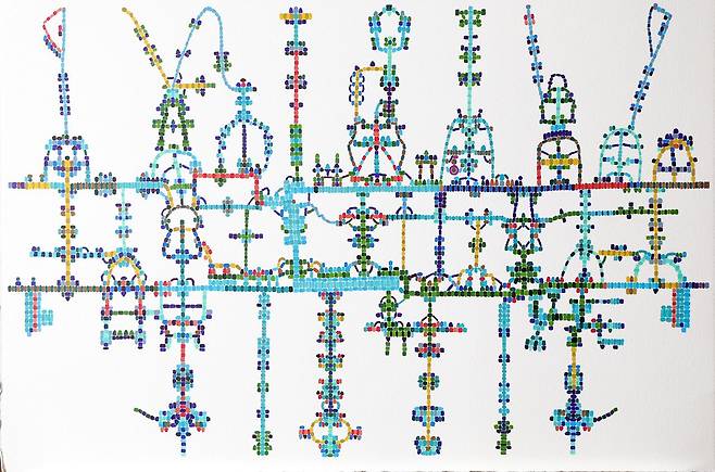 난해한 퍼즐같아 보이는 이정현의 그림엔 나름의 규칙이 있다. 그는 한 옥타브 내 12음 각각에 색을 부여한다. 가사나 멜로디에 따라 떠오른 이미지가 더해지기도 한다. 예를 들어 동요 ‘오빠 생각’의 그림 악보에는 말 탄 오빠와 논밭, 아이가 사는 집이 등장한다.
