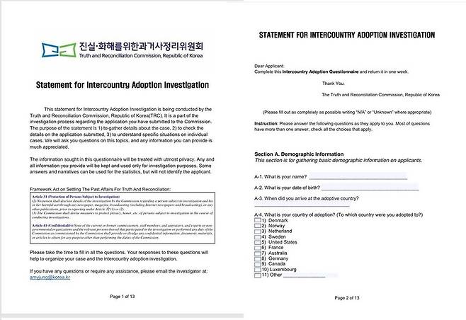 “덴마크로 간 입양인의 경우 덴마크 입양알선기관과 한국의 입양알선기관 사이에 오간 서신 자료가 있어요. 마치 ‘이번에 아이들 얼마만큼 보내줄 수 있냐’고 물건 거래하듯이 오간, 영어와 덴마크어로 된 문서들이죠. 이것도 분석해서 보고서에 담았어요. 그게 덴마크에만 남아있겠냐는 거죠. 덴마크는 진화위 통계로 8265명의 아동이 입양됐지만, 미국이 9만3009명으로 10배 이상 많아요. 미국이나 프랑스, 스웨덴 등 다른 입양수령국과의 협조를 받도록 해야 합니다. 미국의 경우 포이아(FOIA, 정보공개법)를 통해 이민 관련 기록을 알 수 있는데, 입양인 관련 문서도 찾을 수 있겠죠.”