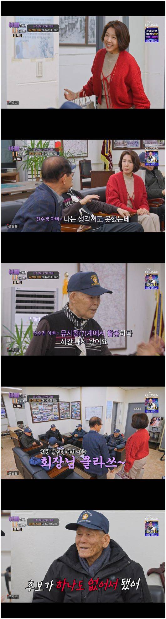 전수경의 아버지 전한균 씨는 6.25 참전 용사 사무실을 찾았다. 그곳의 부회장으로 있으면서 다른 어른들과 이야기를 나누며 활발한 모습을 보이는 전한균 씨의 모습은 딸인 전수경은 물론 다른 패널들의 마음도 흐뭇하게 만들었다.