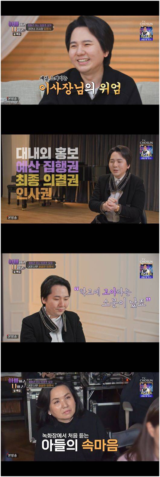 한편 임형주는 용산문화재단의 최연소 이사장에 선임, 임명식을 가졌다. 그는 “제 어머니는 제 시상식에 한번도 안 왔다. 제가 콩쿠르 1등을 정말 많이 했다. 예원학교 시절에도 단 한번도 안 왔다. 그래서 고아라는 소문이 났다”라며 어머니 헬렌 킴이 참석하지 않을 거라고 예상했다.