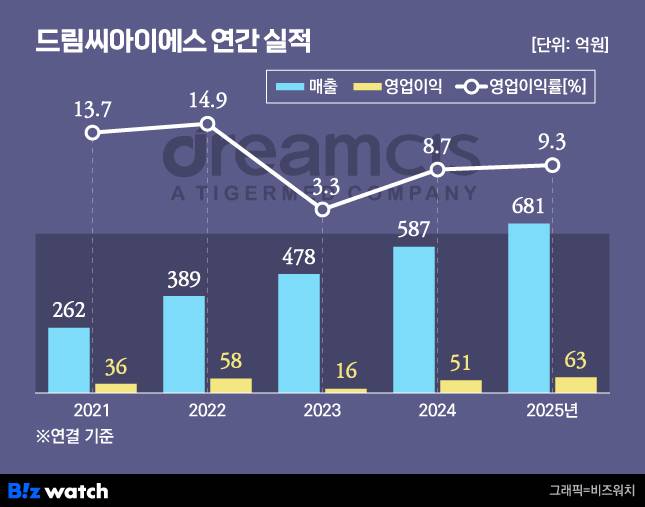 드림씨아이에스는 지난해 연결 기준 매출액 681억원 영업이익 63억원을 기록했다. 이는 전년 대비 매출은 16%, 영업이익은 25.2% 증가한 수치다.
