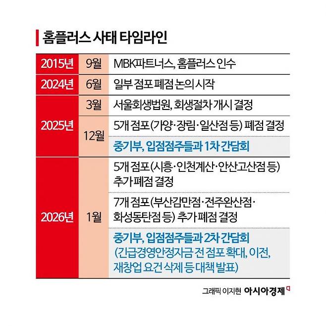 지난달 열린 중기부와 홈플러스 입점점주들과의 두 번째 간담회에서 점주들은 정부의 긴급경영안정자금 집행 기준이 까다로워 현장에서의 체감 효과가 크지 않다고 호소한 바 있다. 지난해 열린 첫 간담회 이후, 중기부가 지원 대상을 전 점포로 확대하고 이전·재창업 요건을 삭제하는 등의 대책을 마련했으나, 정작 현장에서는 신용등급 미달과 한도 부족으로 대출을 받지 못했다는 토로가 쏟아졌다.