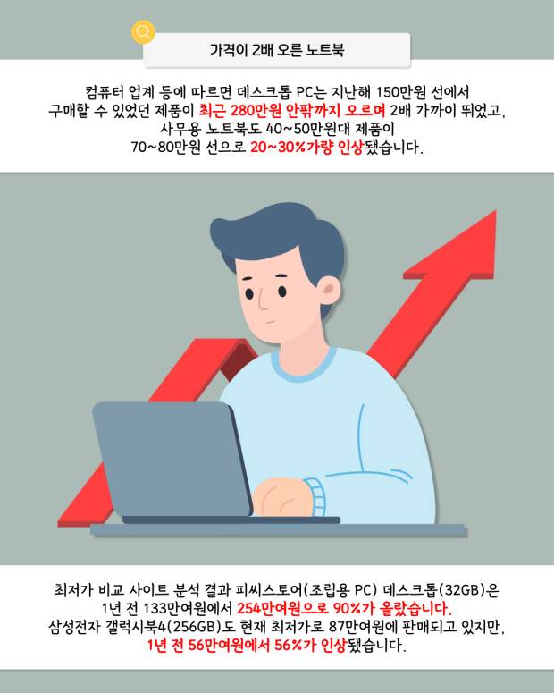 새 학기를 앞두고 메모리(RAM)와 SSD 등 핵심 부품 가격이 급등하면서 PC·노트북 가격이 크게 오르고 있다. AI 데이터센터 확대로 메모리 수요가 급증한 영향으로, 데스크톱과 노트북 가격이 1.5~2배 가까이 상승해 대학·대학원 입학생과 학부모들의 구매 부담이 커진 상황이다.